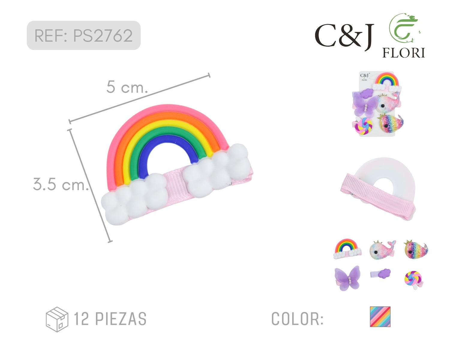 12 Paquetes de 6 Pinzas para el Cabello de Unicornio