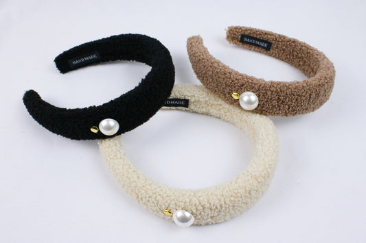 12 Diademas de Peluche para el Cabello con Detalle De Perla