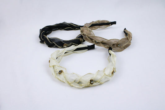 12 Diademas para el Cabello Acolchonada con detalles de Tela de Gasa Trenzada y Pedrería de Fantasía