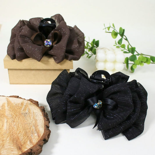 12 Moños para Cabello Pinza de Garra con Diamantes de Fantasía
