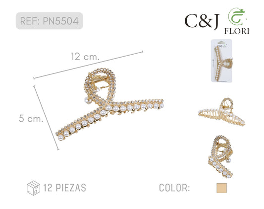 12 Pinzas en Forma de Garra para el Cabello con Perlas