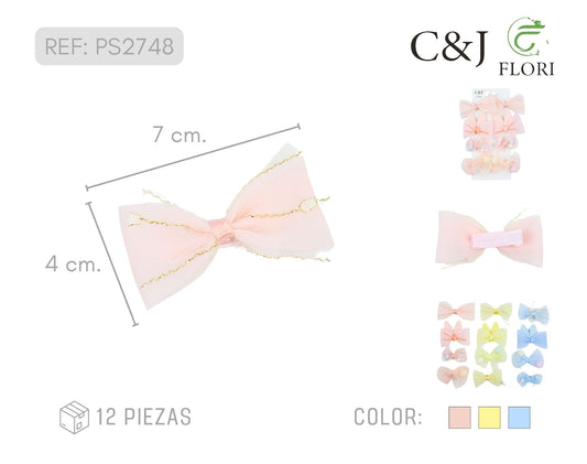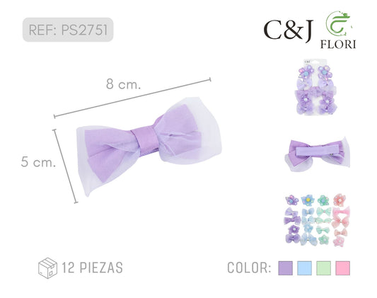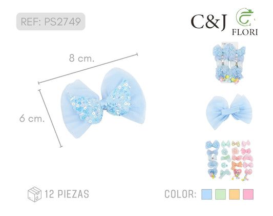 Docena de 10 Pinzas Con Moños para el Cabello de Niñas