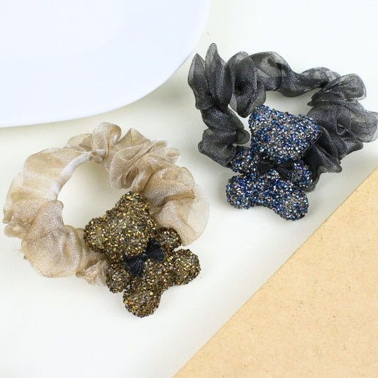 12 Scrunchies de Tul con Charms de Oso con Glitter