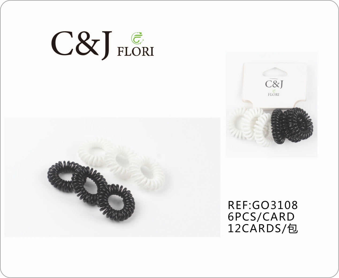 12 Paquetes de 6 Ligas para el Cabello Elásticas Set Cable Teléfono Espiral en Blanco y Negro