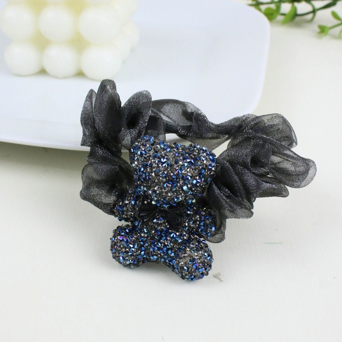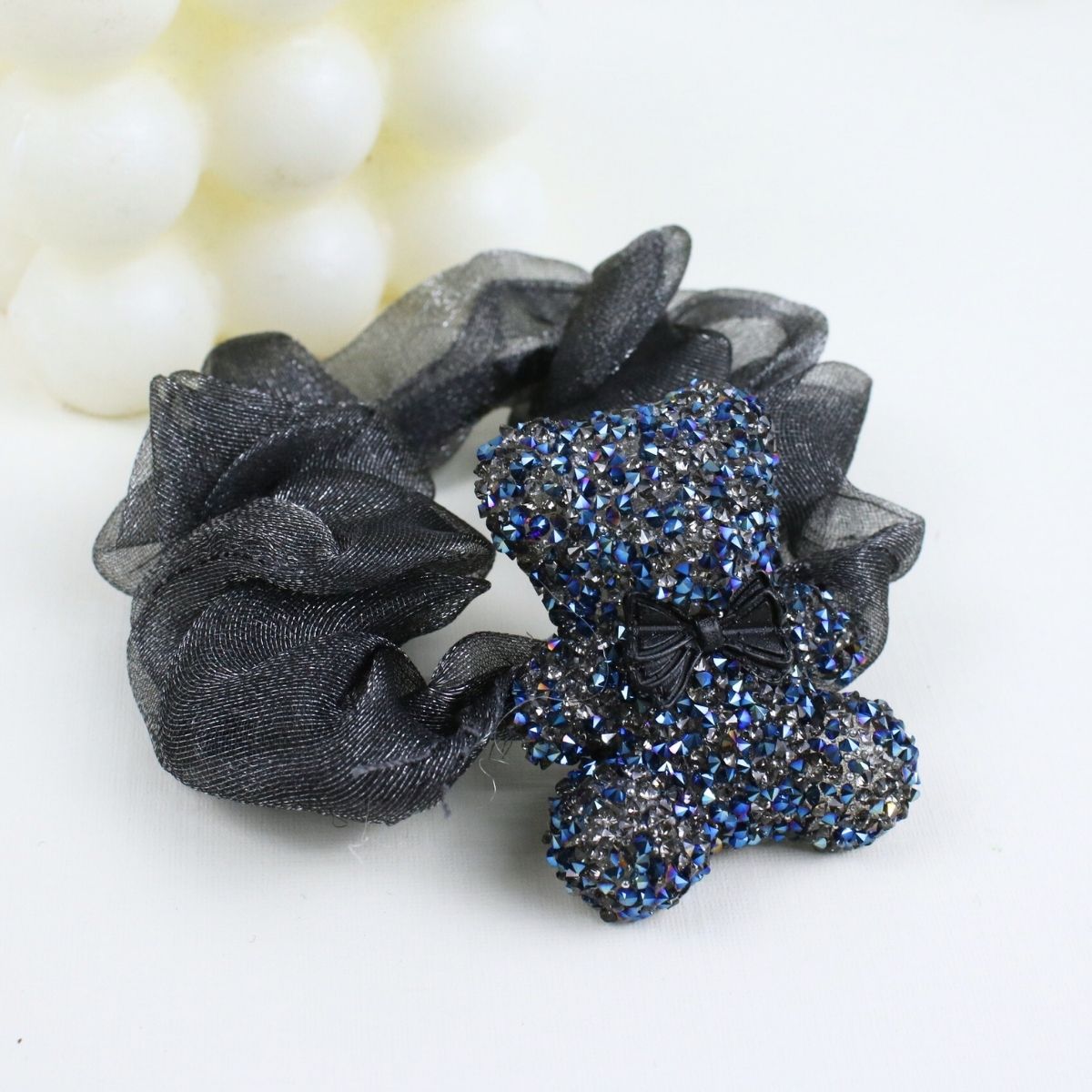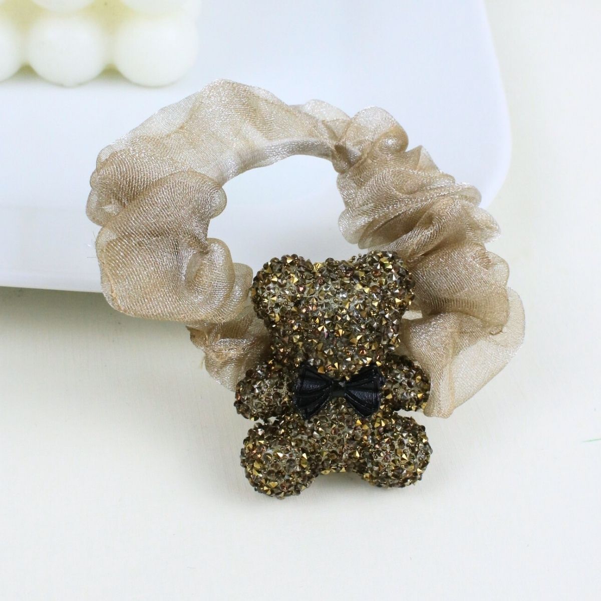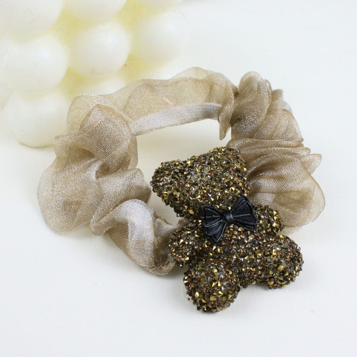 12 Scrunchies de Tul con Charms de Oso con Glitter